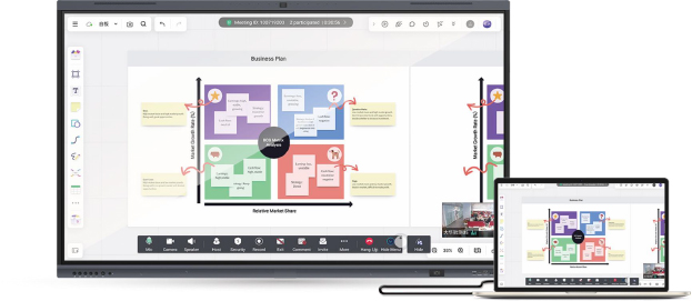 ホワイトボード、4K画質の高精細大型ディスプレイ、WEB会議端末の